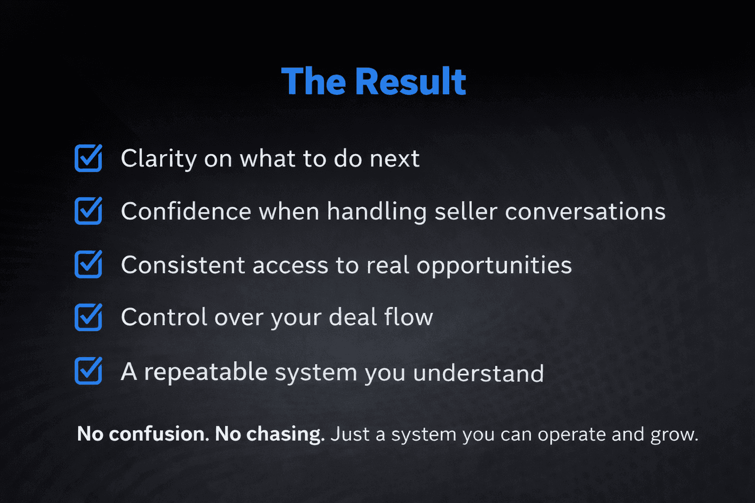 You cannot close deals without conversations, and you cannot have conversations without leads. Most beginners spend weeks learning but never put themselves in a position where sellers are actually reaching out. Without consistent lead flow, everything stays theoretical. There are no reps, no feedback, and no real opportunities to improve.
